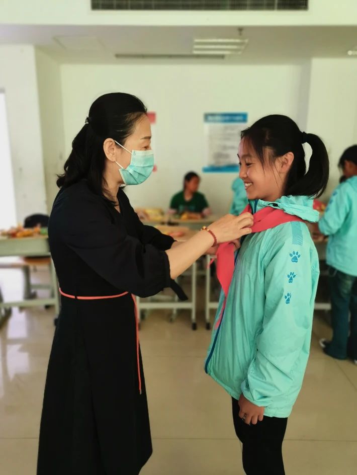 活動(dòng)伊始,班主任親手給同學(xué)們佩戴紅領(lǐng)巾,一起重溫了中國(guó)少年先鋒隊(duì)隊(duì)歌,并講解紅領(lǐng)巾和中國(guó)少年先鋒隊(duì)的由來(lái),告訴同學(xué)們?cè)诤推侥甏绾巫鲆幻细竦纳倌晗蠕h隊(duì)隊(duì)員,要從小樹(shù)立遠(yuǎn)大理想,立志成長(zhǎng)為“有理想、有道德、有文化、有紀(jì)律”的社會(huì)主義事業(yè)接班人。同學(xué)們高唱《我們是共產(chǎn)主義接班人》,整齊嘹亮的歌聲響徹教室,展示了體校學(xué)子們朝氣蓬勃、昂揚(yáng)向上的精神風(fēng)貌。