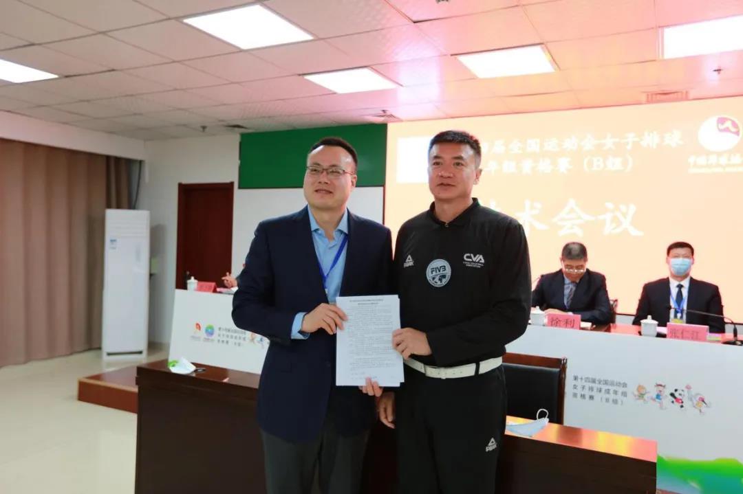 隨后,組委會負責(zé)人對濰坊賽區(qū)的基本情況做了簡要匯報。管委會仲裁委員、裁判委員、技術(shù)委員對相關(guān)事宜作了說明。管委會主任對本次比賽的賽風(fēng)賽紀作了進一步強調(diào)。國家排管中心訓(xùn)練及反興奮劑部負責(zé)人與各運動隊簽訂疫情防控、賽風(fēng)賽紀和反興奮劑工作責(zé)任書,裁判員代表遞交了疫情防控、廉潔自律和公正執(zhí)裁承諾書。