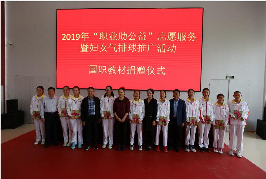 為充分彰顯“職業(yè)助公益”的主題,在婦女氣排球推廣活動開始前,本次主辦方在市體校舉辦了國職教材捐贈儀式、國家職業(yè)資格課程講座、健康知識講座等系列豐富多彩的活動。