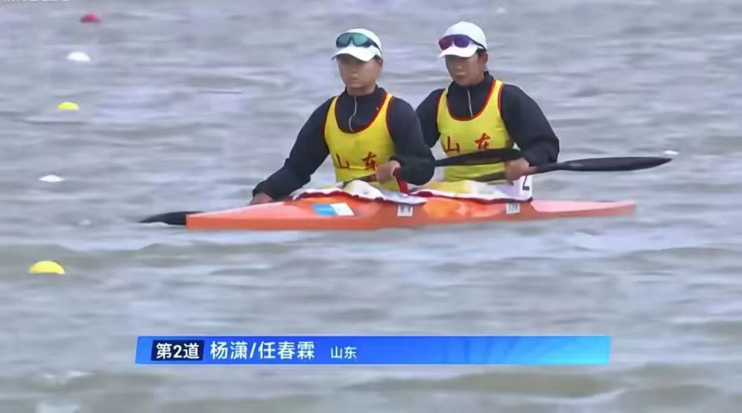 在女子500米雙人皮艇比賽中,來自山東隊曲寧寧/韓冬煥以預(yù)賽小組第一的成績直接晉級決賽A組,楊瀟/任春霖則以小組第二晉級半決賽,又通過半決賽順利進入到A組爭冠賽。決賽中,湖北、浙江兩隊成為山東兩條艇的最大競爭對手。最終經(jīng)過激烈比拼,浙江隊李冬崟/俞詩夢獲得冠軍,楊瀟/任春霖僅以0.031秒的極微弱差距位居亞軍。